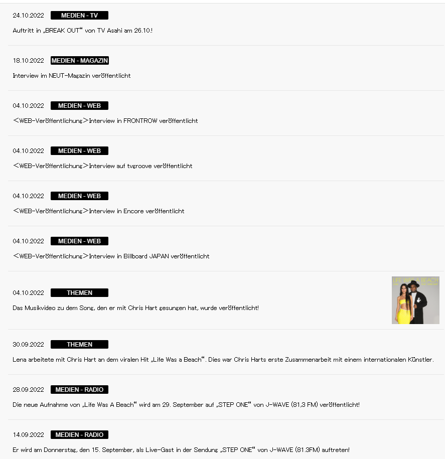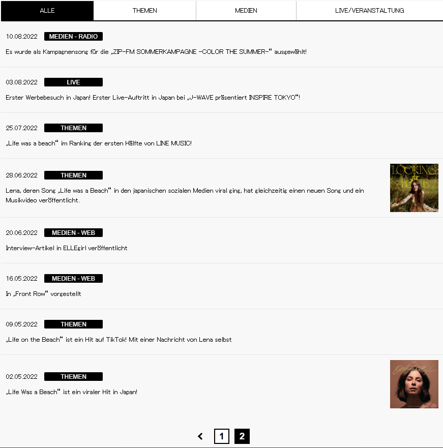 P.S. Lenas => Webseite bei Universal Music Japan existiert noch, wurde aber nach 2022 nicht mehr gepflegt.